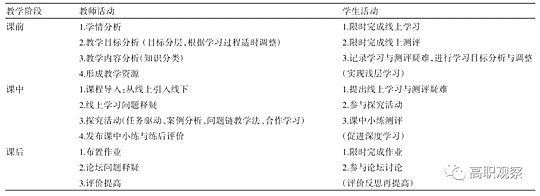 课中设计的步骤是:衔接课前线上知识技能的内容引入线下教学重难点,针对线上学习的问题进行释疑,对教学重难点设置探究活动,最后发布课中小练习并根据测评结果深度评价。需要强调的是,课中环节教师不讲授学生通过课前线上学习可以解决的知识技能点,避免学生形成学业依赖。课中是促进学生深度学习的关键环节,探究活动的设置非常关键。探究活动需要厘清活动线索,在线索的关键点设置问题情景和明确递进任务,提升学生分析问题和解决问题的能力。探究活动以小组形式开展,小组成员形成互补(重点是学习基础与能力互补)式学习团队,参与情景式案例分析与问题解答。在探究活动开展过程中,教师重点关注团队参与探究的过程环节,帮助学生解决“学习困难”和跨越“学习的低落情绪”,培养学习方法。每堂课的后阶段设置小测验,考察课中学习效果,鼓励学生小组自评和互评,教师适时点评,达到巩固提高的成效。