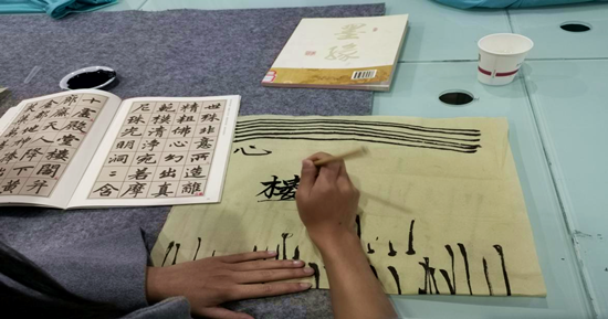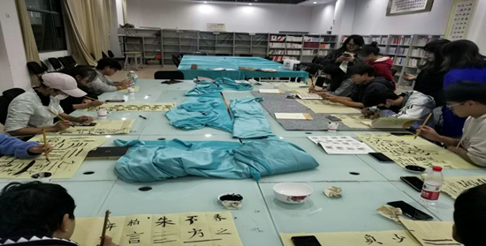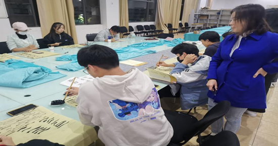 在社团指导老师、会长和后勤部部长的组织安排下,软笔教学活动正式开始。