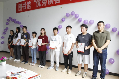 最后,学校教务处处长赵云鹏、学生工作部部长黄凯敏、教务处副处长李银江为荣获“优秀读者”荣誉的同学颁奖。
