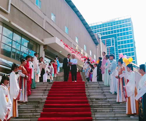作者:图书馆 | 2020年12月18日,阅行读书会部分会员代表参加“庆祝兰亭书画协会成立十周年暨图书馆第二届书画展开幕式”成功举办,阅行读书会在书画展开幕式表演的9人朗诵节目《因为有你》取得良好的效果。活动期间阅行读书会会员热情高涨,积极主动参与到书画展布置场地,准备节目,渲染气氛等工作中,增强了会员的交际能力和团队协作能力。同时,活动过程中社团干部之间也进行了比较深入的互相了解和交流,增进了与兰亭书画协会及其他社团之间的友谊,为今后社团之间的互相交流和活动开展打下基础。