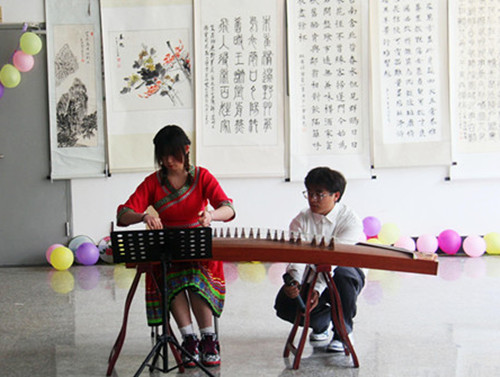 秦筝吐绝调,玉柱扬清曲,旋依高和断,声随妙指续。徒闻音绕梁,宁知颜如玉。——筝艺阁古筝社表演《高山流水》、《瑶族舞曲》